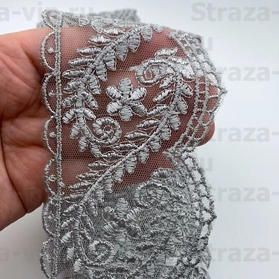 TK95-765-01 Кружево на сетке (серый) шир. 7,5см=1 м — отзывы